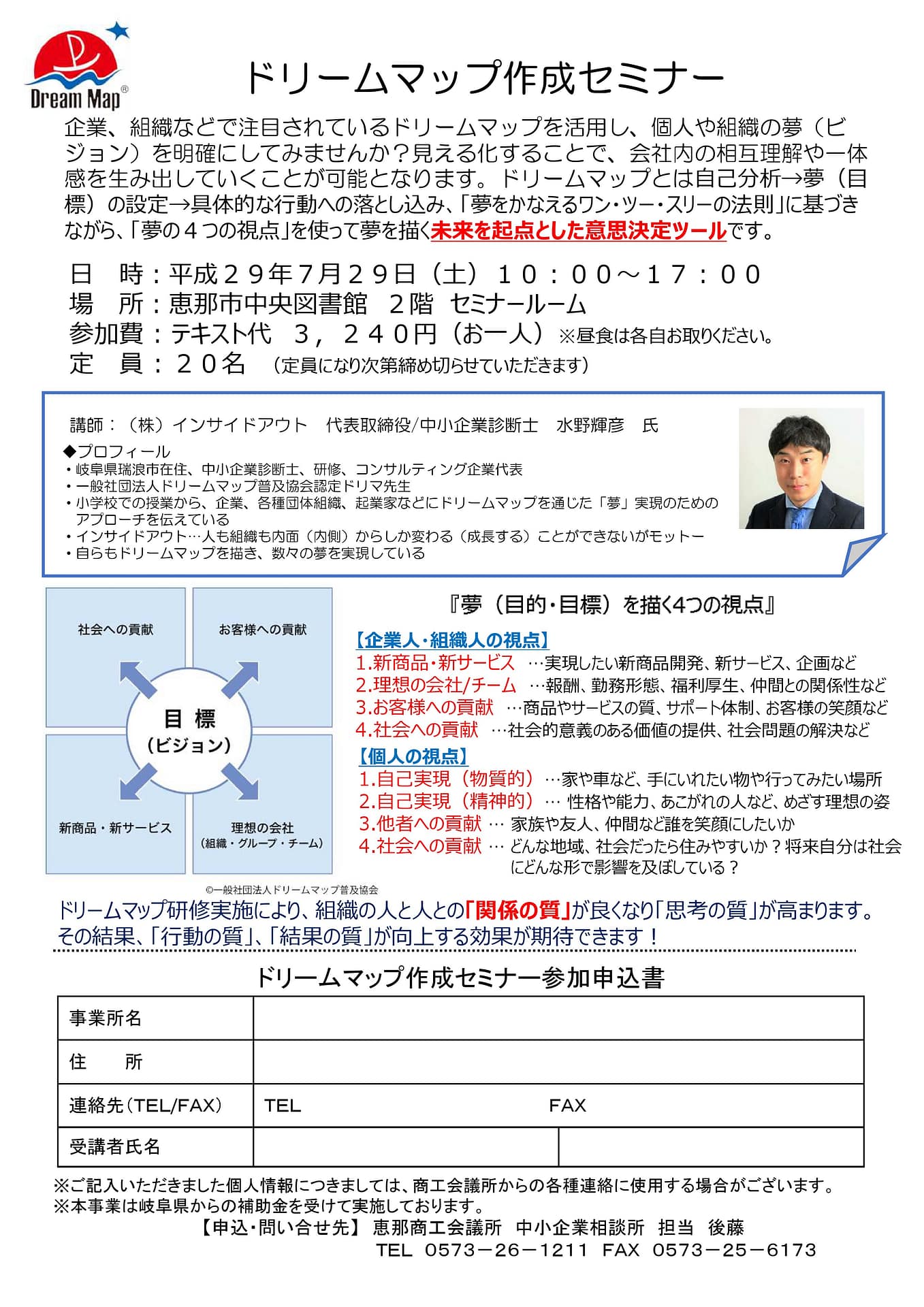 恵那商工会議所主催のドリームマップセミナーを7月28日(土)に
