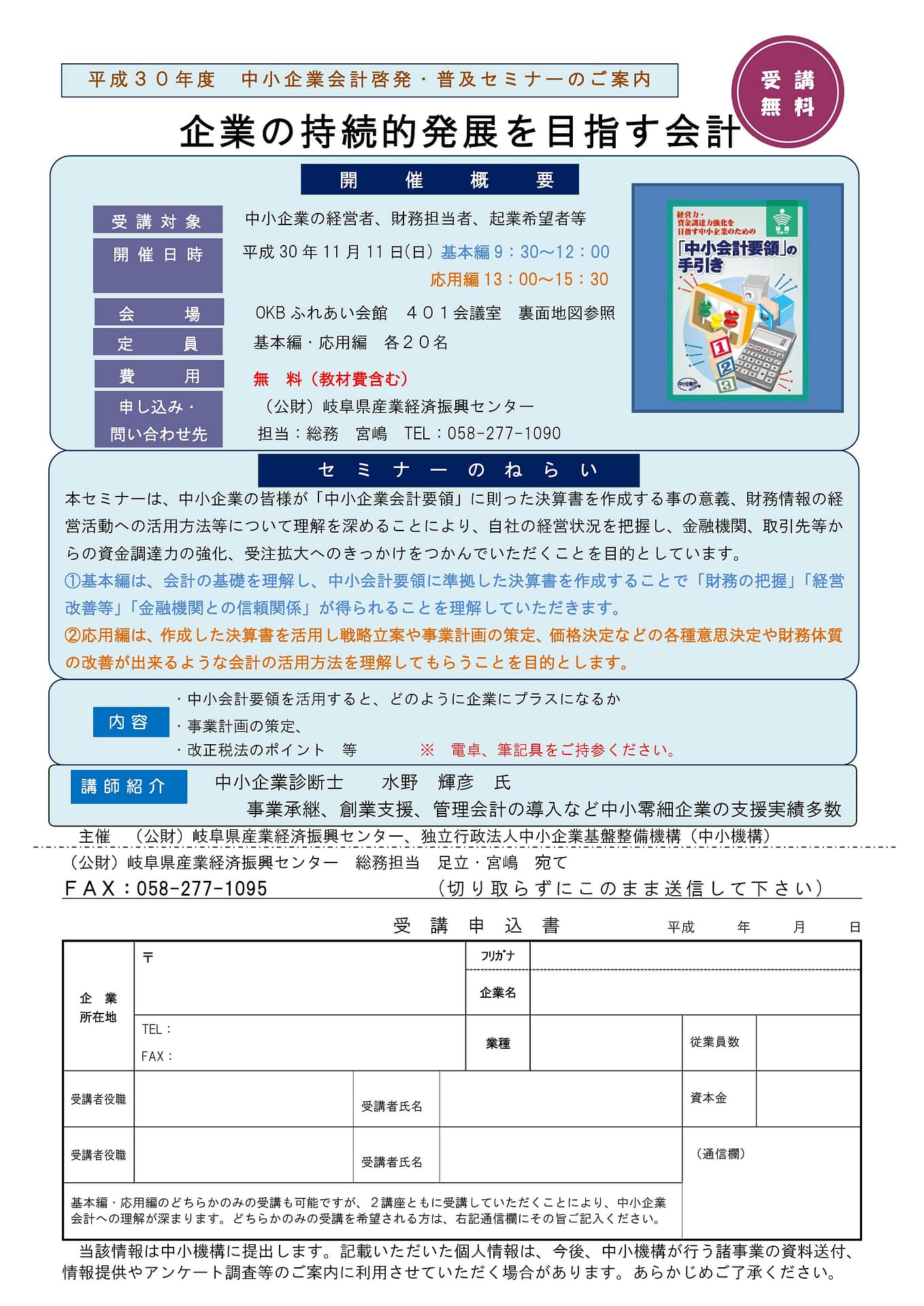 11月11日(日)に岐阜県産業経済振興センターにて、会計普及セミナー講師を担当します。