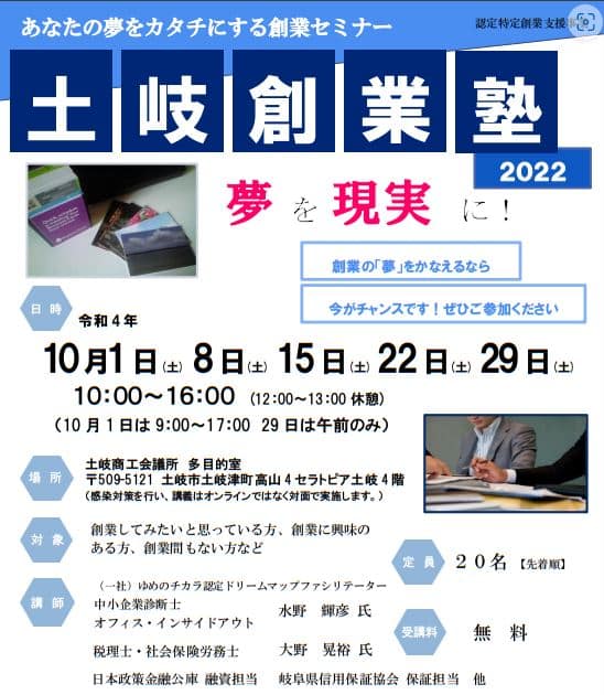 これで、多治見、土岐、瑞浪と東濃3市で創業塾を実施させていただくことになりました。