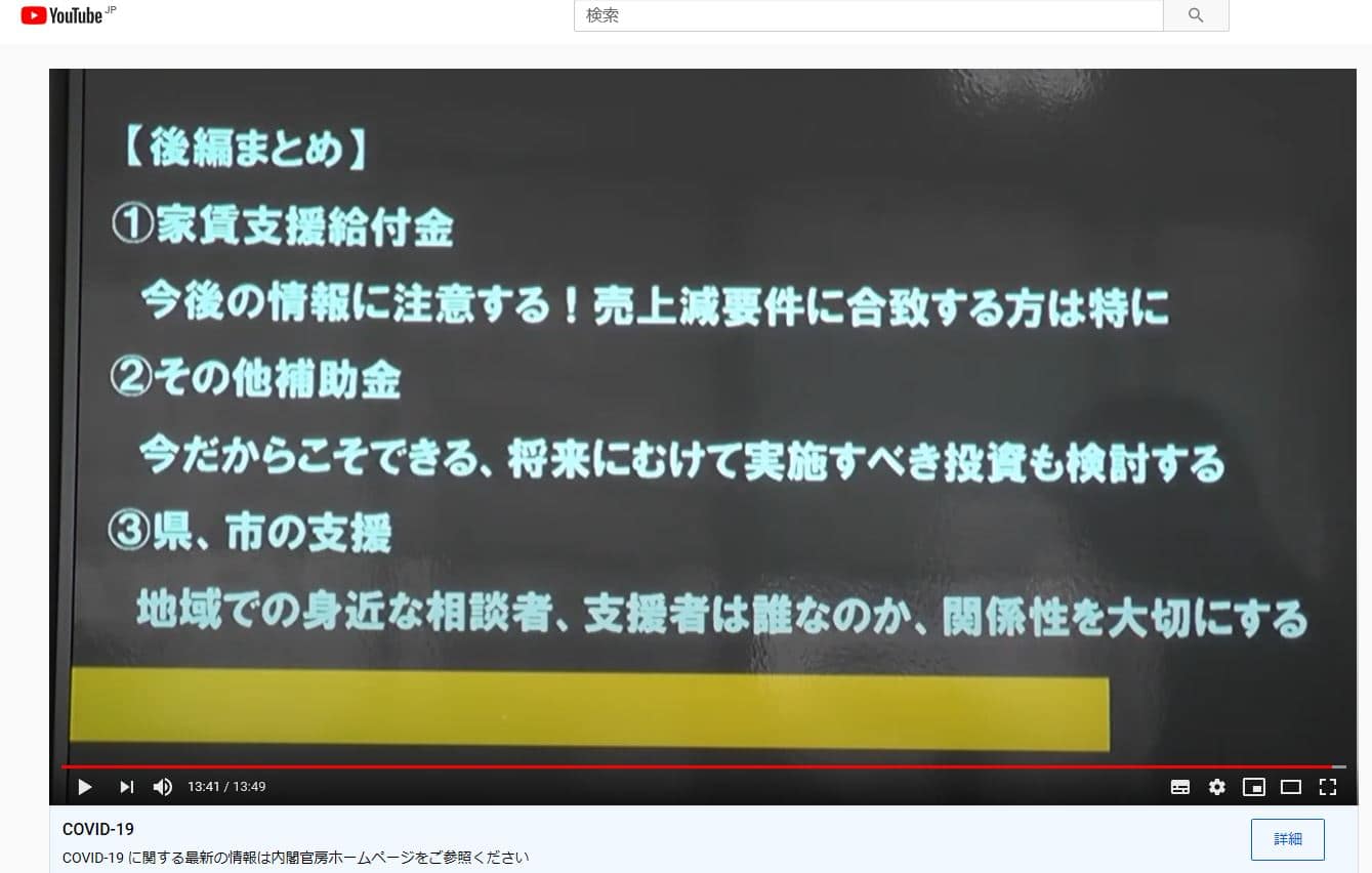融資や給付金、補助金等についてYouTube動画を撮影しました。